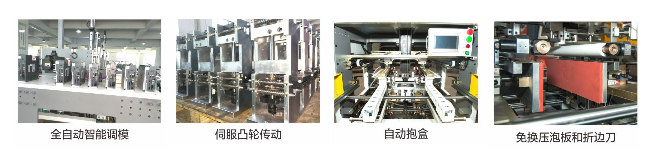 3.免換壓泡板和折邊刀:該機已經裝好固定長度的壓泡板和折邊(biān)刀,適應任意尺寸紙盒的生產,無需更換拆卸,節省了轉板時間和成本。